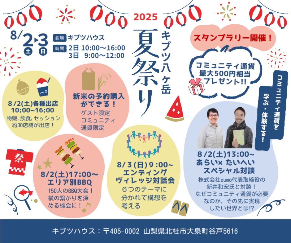 毎年恒例のキブツ八ヶ岳『夏祭り2025』が開催されます!!!