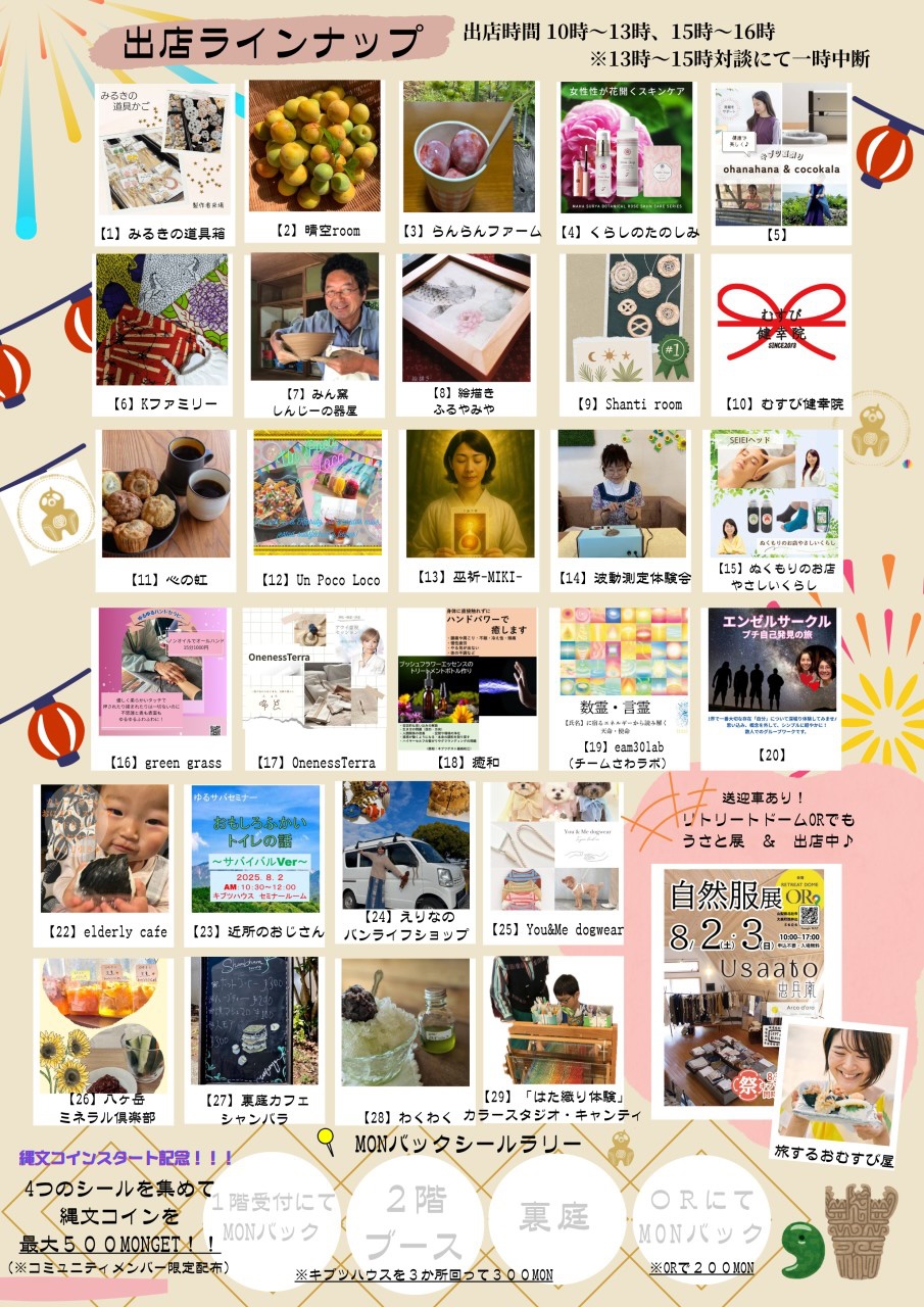 出店や運営スタッフはみんなキブツ八ヶ岳のコミュニティメンバーですので、コミュニティメンバーとの交流も楽しんでいただければと思います。