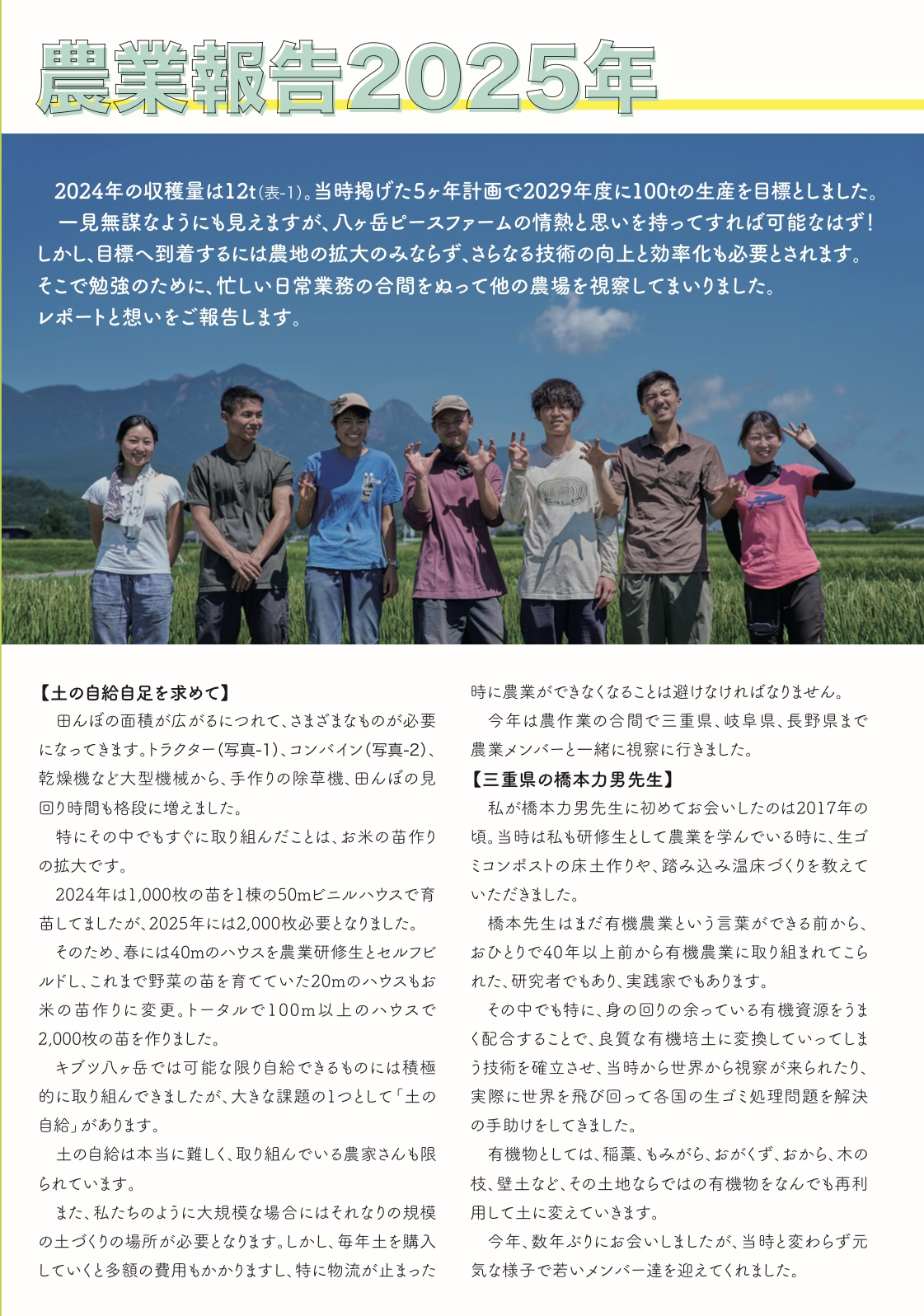 そう志して7年、事業は事業専門チームの会社組織(やつは株式会社)、農業は農業専門チームによる会社組織(八ヶ岳ピースファーム株式会社)と役割分担しながら、一緒に働く仲間だけでなく、これまで100世帯以上200名以上の方々の八ヶ岳移住サポートに関わり、同じ八ヶ岳南麓に移住してきた仲間とともに